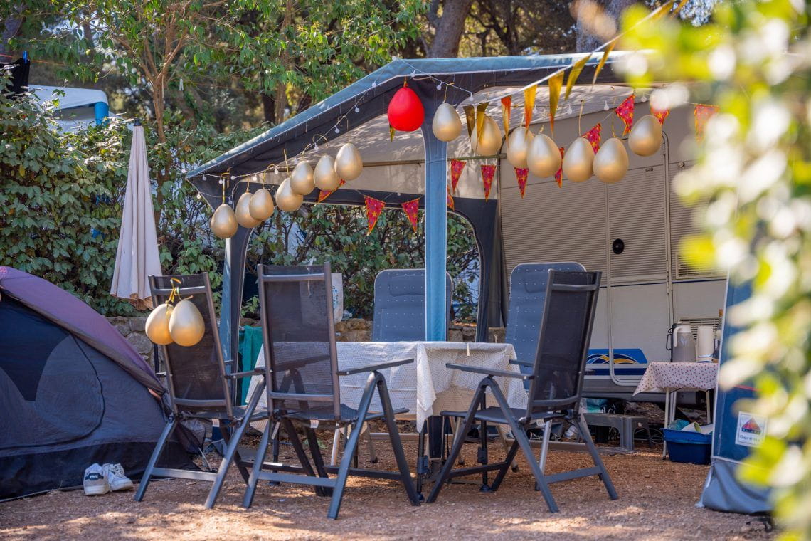 Pitch for a tent, a caravan, van or a motor-home for 2 people, a car, 10 amps (2200 watts). You will need 25m of cable and a European adapter for connecting electricity. Pitch more than 100m2. Some pitches have a very beautiful sea view.
