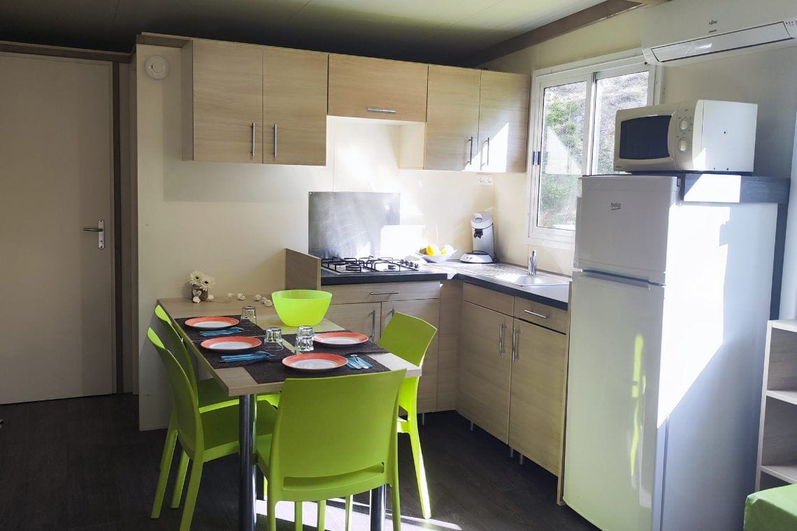 In the chalet “Cassis” you find: 4 matresses. 5 pillows. 4 blanket. 2 deckchairs. 5 chairs. 1 Double Bed with slats 160 X 200 cm (L3. L4. L25. L26) or 140x 190 cm (L2. L35). 2 simples Bed with slats 90 X 200 cm. 1 bunk bed 90 x 200cm. 3 Plastic boxes. 5 Dessert Plates. 5 Soup plates 5 Plates. 5 bowls. 2 Mugs. Air-conditioning. 1 Fridge. 1 Sink. 1 gas cooker. Various cupboards. various Clothes Dryer. 1 Clothes Dryer. 1 table. Tv. 1microwave.1 casserole dish. 1 frying pan. 1 electric coffee machine. 2 Saucepans. 1 Colander. 1 scissors. 1 Ladle. 1 skimmer. 1 spatula. 1 Salad Cover. 5 Juice glasses,5 wine glasses. 1 Salad Spinner. 10 plates. 1 chopping board. 10 knives. 1 Meat Knife. 10 soup spoons. 10 dessert spoons. 10 Forks. 1 Can opener. 1 Bottle Opener. 1 peeler. 2 Icecube trays. 1 toaster. 1 carafe. TV. Barbecue or Plancha.