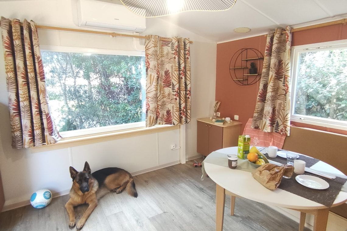 In the Mobile home Port d’Alon: Our rates include water, electricity and gas, but not cleaning or bed linen or towels. The rate of our rentals is for a precise number of people. They will be billed per night for – an extra car 6€.- an animal 8.00€, (up to date vaccination record required upon arrival , dogs in the 1st and 2nd category are not permitted in the campsite). Baby kit 30€/stay for a baby’s bed + highchair + bath’baby. Disposable cloth for 1 personne 10€, for 2 personnes 15€ (140), for 2 personnes 16€ (160). Holiday taxe 2025 : € 0.86 per night per adult. Eco-taxe: 0.65€ per night. Renovation 2024. In the mobil home Port d’Alon can surf, wifi network the entire campsite. Choice rental: 20€